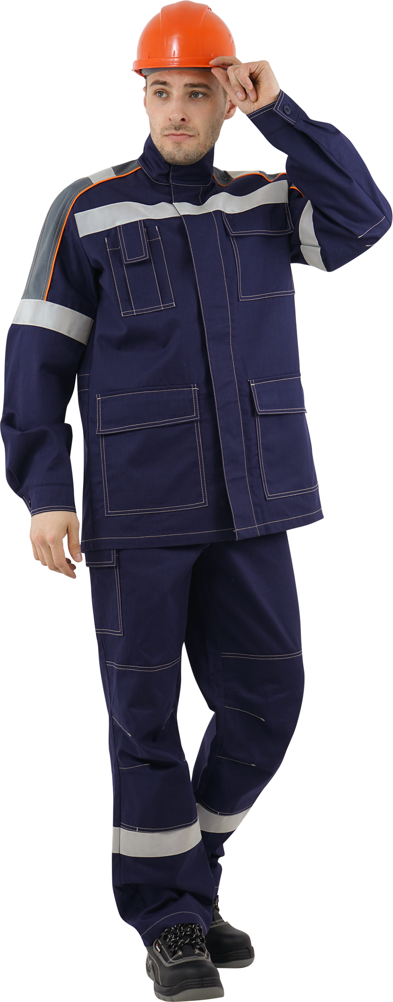 Костюм мужской МЕГАСТАТОЙЛ от нефтепродуктов, кратковременного воздействия пламени, статического электричества, темно-синий/серый/оранж
