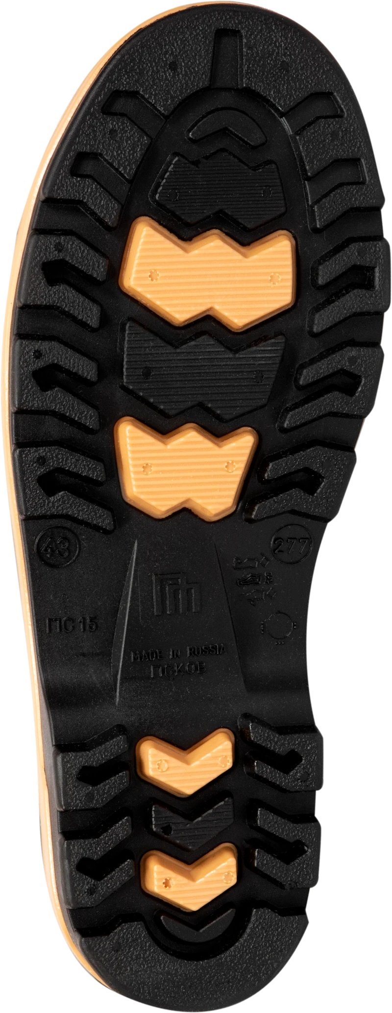 Особенности: модель обладает повышенной комфортностью по сравнению с двух-компонентными моделями. Промежуточный слой подошвы (вспененный ПВХ) придает модели высокие амортизирующие свойства. Защитные усилители на внешних и внутрених сторонах голенища предохраняют щиколотки от боковых ударов. Подошва обладает самоочищающим профилем и гарантировано защищает от скольжений по мокрым и зажиренным поверхностям.
