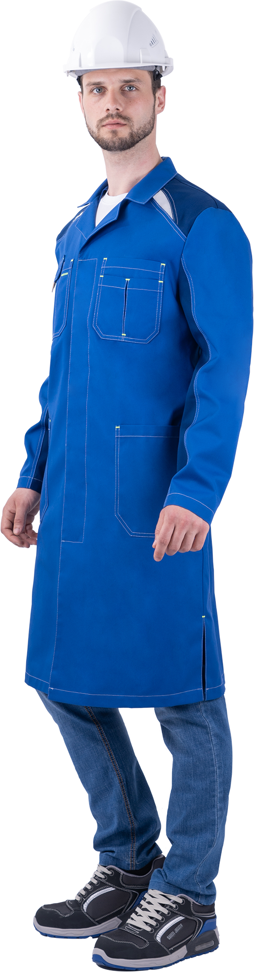 Халат мужской ТУРБО SAFETY от механических воздействий и ОПЗ, василек/синий