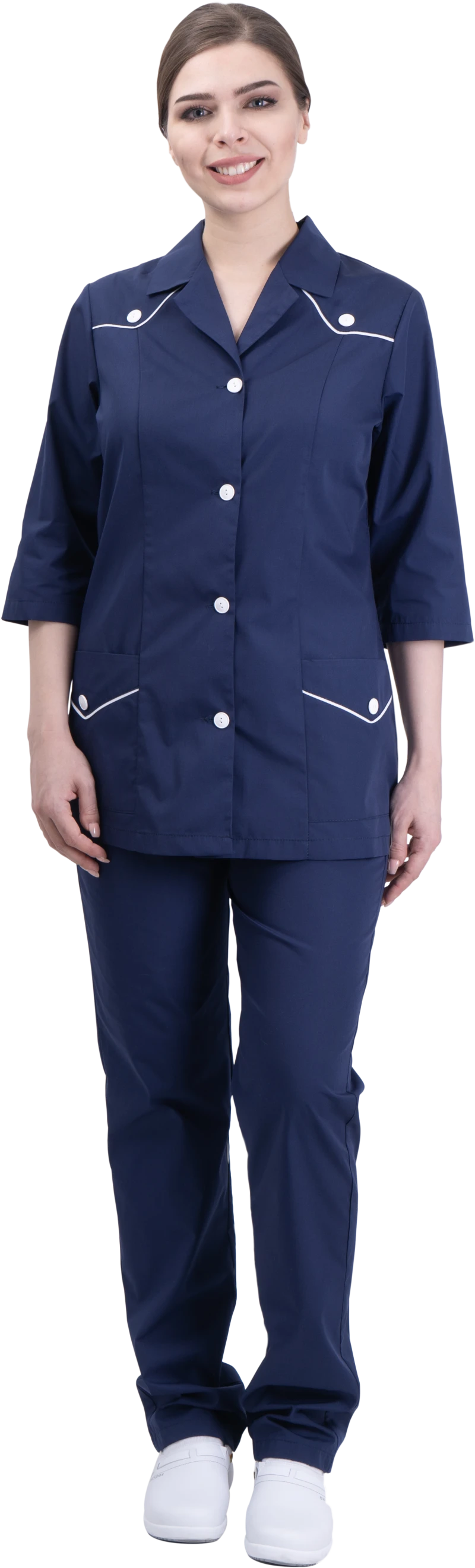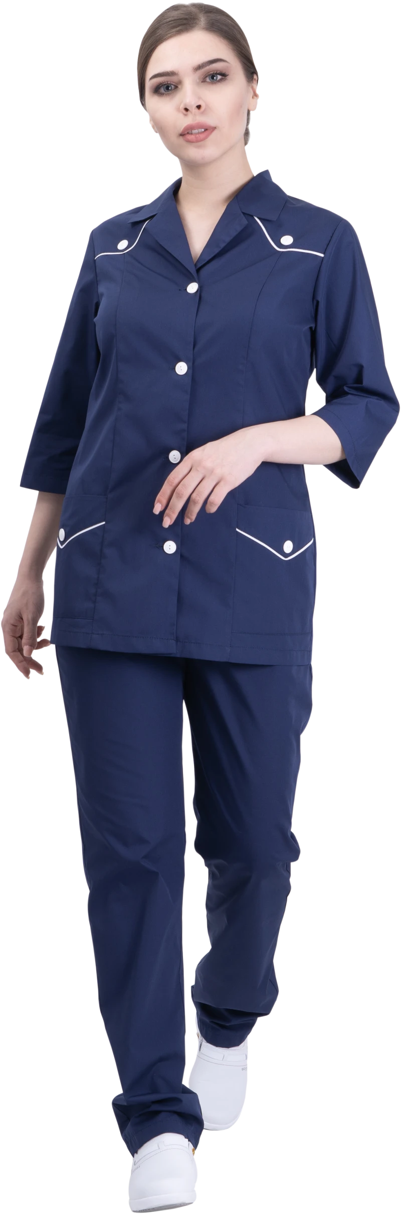 Комплект состоит из блузы и брюк.