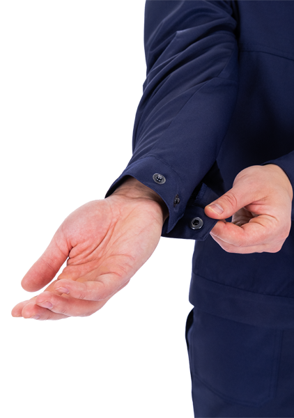 • рукава двухшовные с разрезами в локтевом шве и с манжетами, застёгивающимися на кнопки